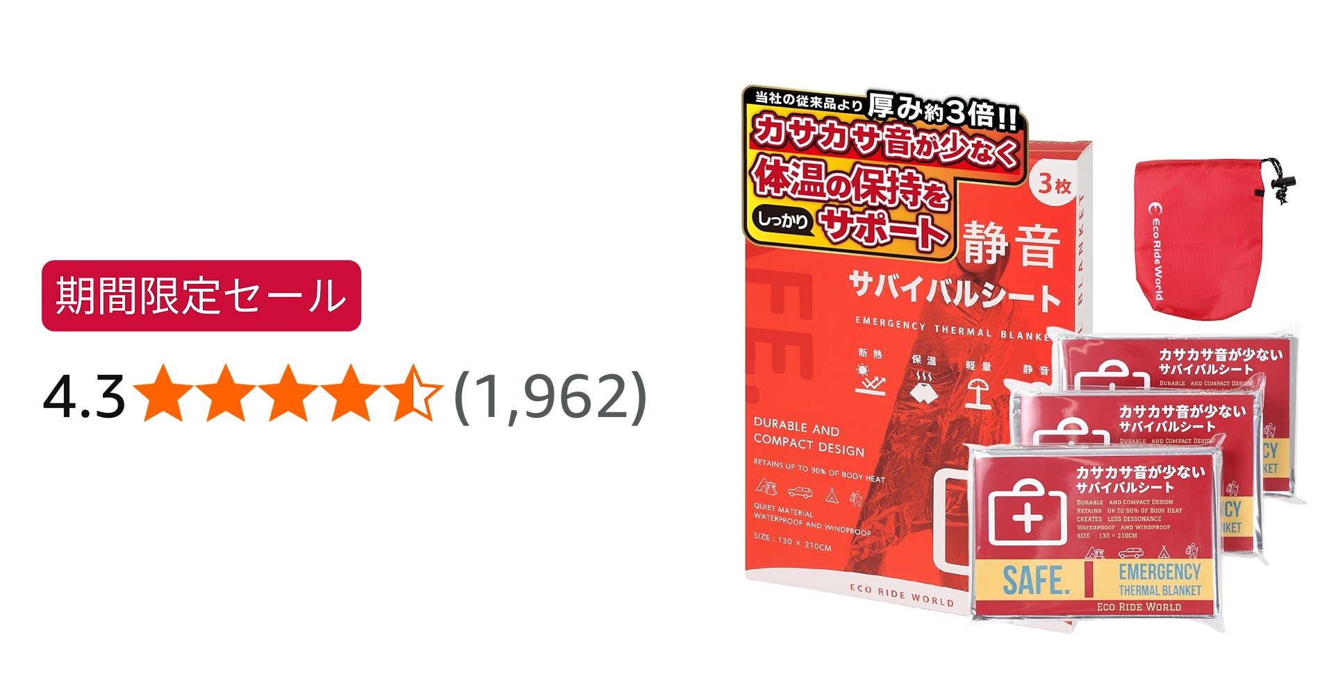 夜に寒くて休めないというときにもアルミブランケットを使う事で、寒さ対策ができます。